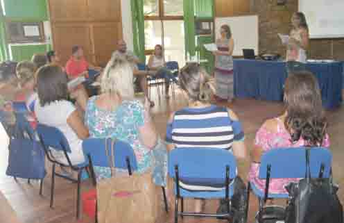 A Secretária Adjunta da Secretaria de Educação, Cultura e Desporto, Cris Hax, junto com as coordenadoras pedagógicas Renata Blodorn e Camile Corvello, realizaram a primeira reunião com os gestores do ensino fundamental.