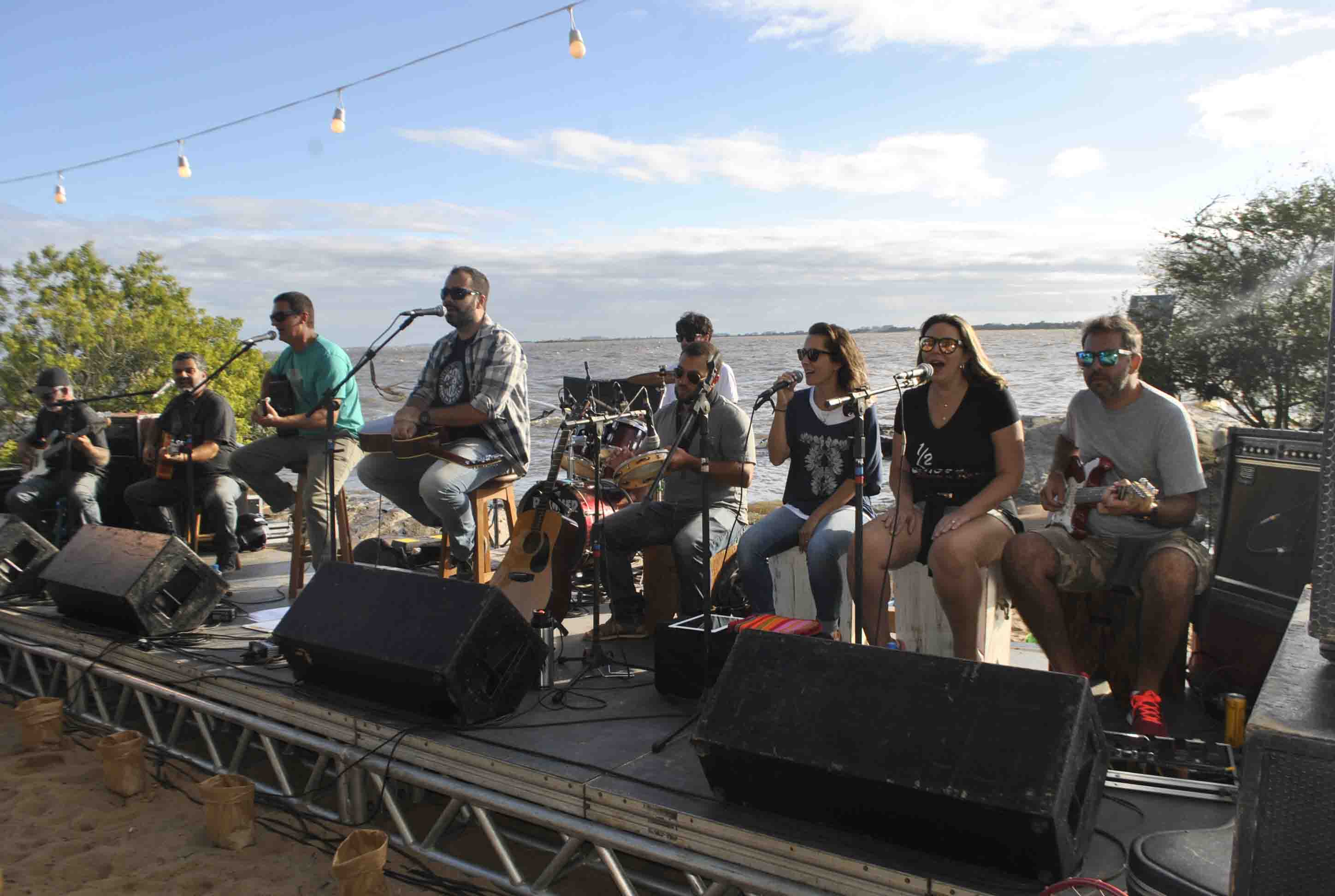 * ÀS 16:30 h do último domingo (19) a banda 1/2 Bossa Nova & Rock’n Roll “presenteou” a comunidade lourenciana e visitantes com o terceiro e último show (Pôr do Som) da temporada. Realizado na curva do Arroio São Lourenço, um grande público teve a oportunidade, uma vez mais, assistir um elogiado show com variado repertório, retribuindo sempre com muitos aplausos. O espetáculo estendeu-se até às 20:30 h, completando quatro horas de show. O público trouxe suas cadeiras e confortavelmente sentado conferiu cada música entremeada com um chimarrão que circulou entre os grupos presentes. Parabéns à banda 1/2 Bossa Nova & Rock’n Roll que tornou essa temporada mais bonita e alegre com seus três shows. São Lourenço espera que na próxima temporada os aplaudidos eventos se repitam. (Foto: Kelen Bartz)