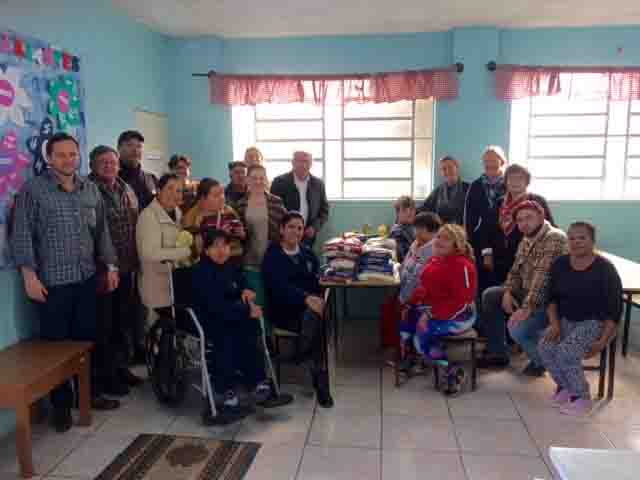 Na segunda-feira (28) o prefeito Rudinei e o Secretário Adjunto de Gabinete Renan Hartwig, estiveram na entidade para entregar os alimentos arrecadados (em torno de 75kg). Na oportunidade os alunos e colaboradores cantaram parabéns ao prefeito.