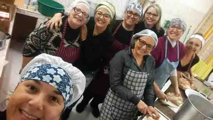 A ideia se concretiza mais uma vez este ano tendo como Chef Ane Cabaldi e suas fiéis amigas da turma do ESDE II. O jantar teve como menu três tipos de massas. A bebida e o bufet de sobremesas foi ofertado pelas turmas da Prof Cleia Dröse e Cleia Prietsch.
