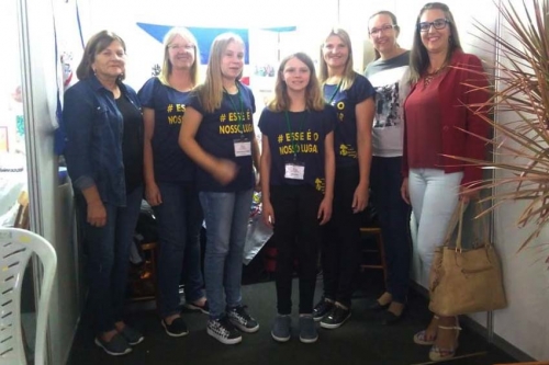 Representantes das escolas municipais Germano Hübner, Francisco Fromming e Davi Canabarro, que também integram o projeto Verde é Vida estavam presentes prestigiando os trabalhos expostos na Expoagro Afubra.