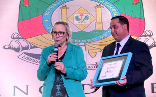 A secretária Arita Bergmann foi homenageada, na noite desta terça-feira (23), em Bento Gonçalves, "por seus 35 anos de trabalho pela saúde, sendo uma das grandes mulheres que fazem a saúde pública acontecer no Rio Grande do Sul", pelas palavras do presidente do Conselho das Secretarias Municipais de Saúde do Rio Grande do Sul (Cosems), Diego Espíndola. Arita foi apontada como a embaixadora do programa Primeira Infância Melhor (PIM), que foi implantado há 16 anos no Estado e foi aprovado e reconhecido nacional e internacionalmente como uma política pública de saúde bem-sucedida.A homenagem aconteceu durante a cerimônia de premiação da Mostra de Experiências Exitosas, que acontece esta semana, junto ao 31° Congresso do Cosems. A Mostra tem por objetivo dar publicidade para trabalhos realizados em municípios gaúchos que trouxeram soluções inteligentes e criativas para a gestão em saúde.Foram 29 experiências premiadas em diferentes categorias e de diferentes lugares do Estado, em áreas como vigilância em saúde, distribuição de medicamentos, saúde mental, saúde prisional, educação em saúde e outros. Fonte Correio do Povo