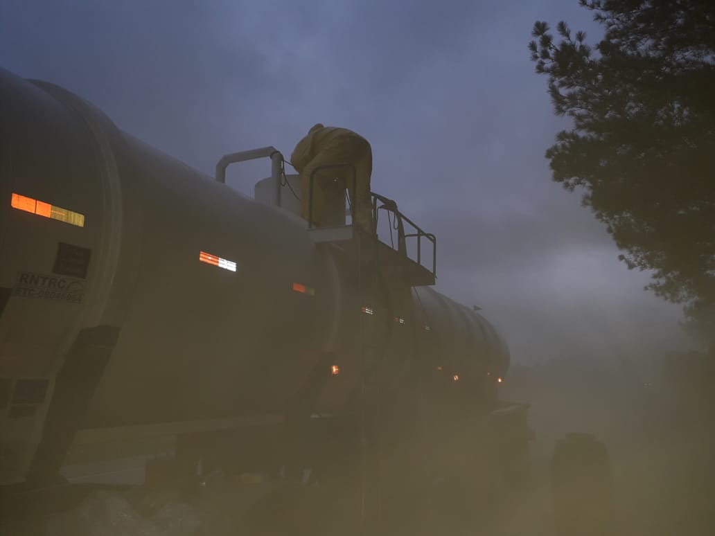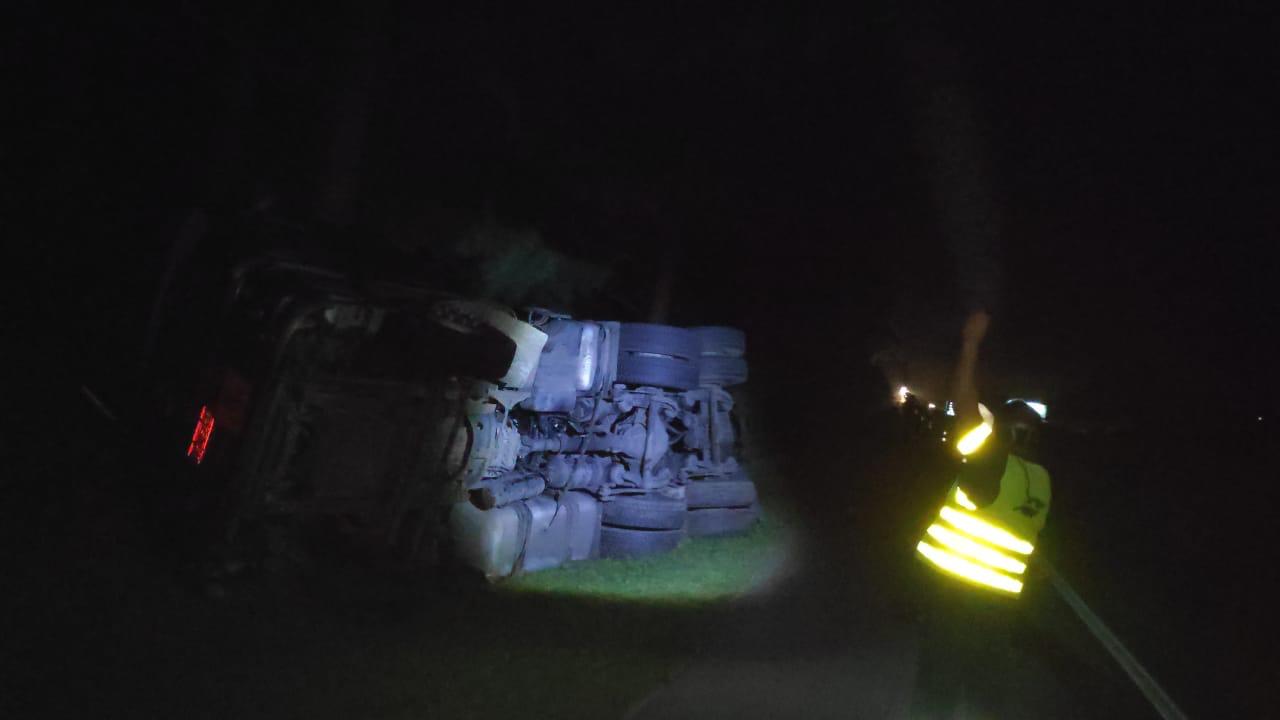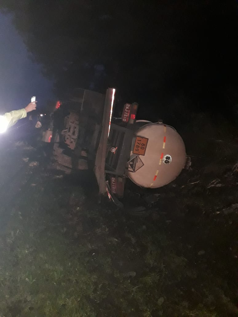 Devido ao tombamento de um caminhão com carga tóxica no início da noite de ontem na BR 116 em Turuçu, o trânsito no local permanece intercalado na manhã de hoje. Conforme informou a concessionária, o caminhão carregado com ácido clorídrico corria risco de explosão em função do contato do produto com a água da chuva. O trânsito havia sido liberado nos dois sentidos, mas na madrugada desta quarta-feira (1º) voltou a operação "Pare-siga" para que as equipes finalizem a limpeza do local e também a retirada do caminhão. A Ecosul informou ainda que não há previsão para o término desta operação. O Corpo de Bombeiros de São Lourenço auxilia no atendimento juntamente com equipe da Rodoquímica que chegou por volta das 22:55h de ontem. Fotos: Lissandro Robaina