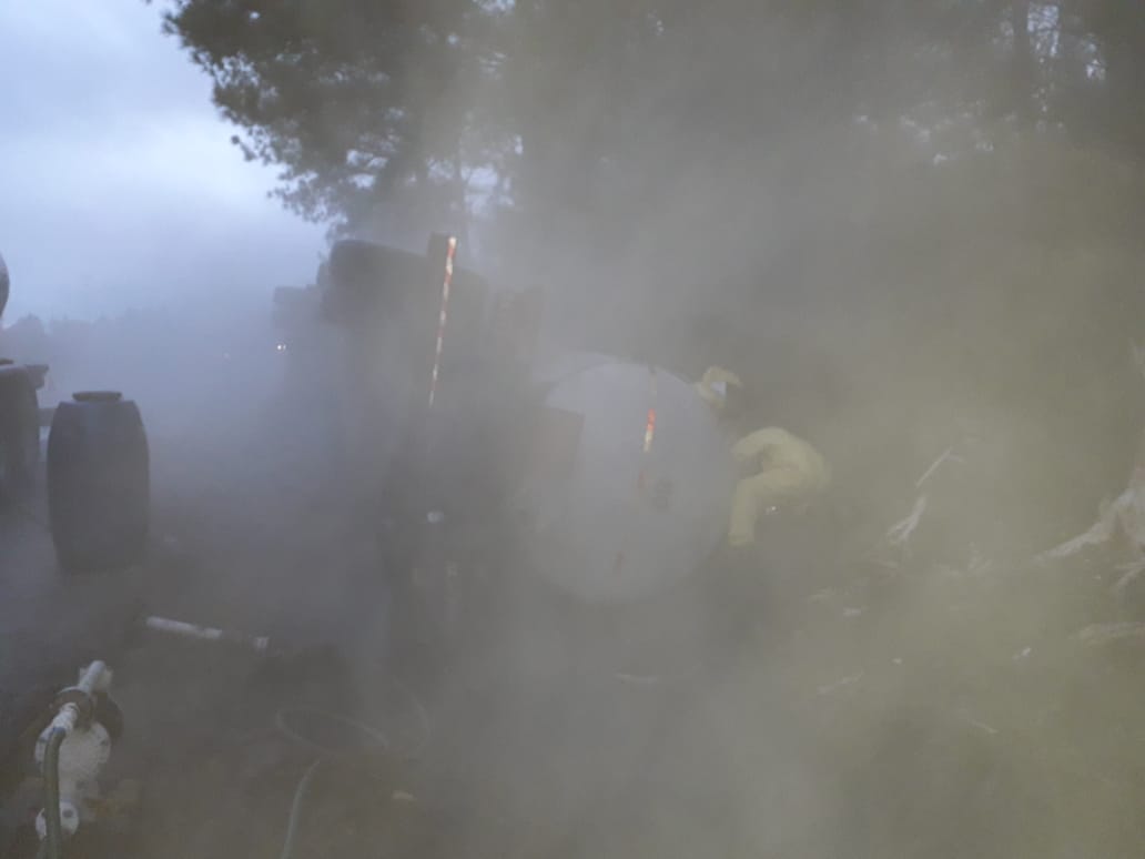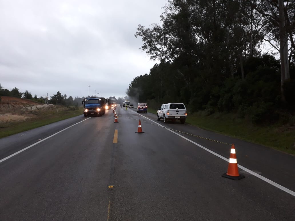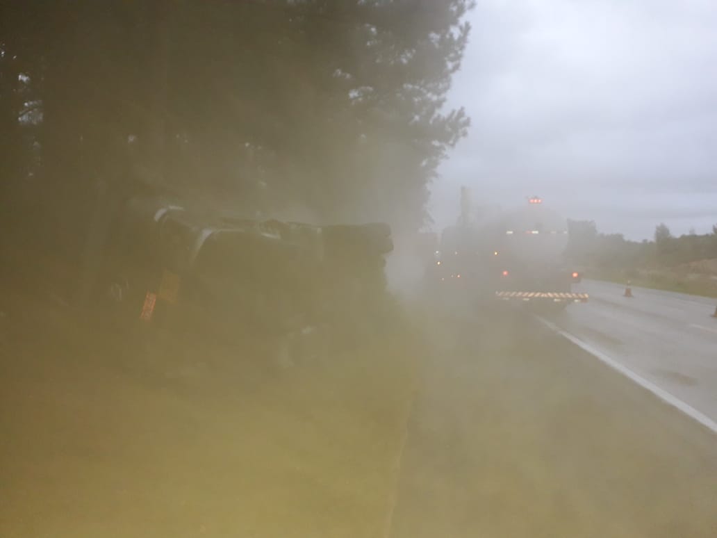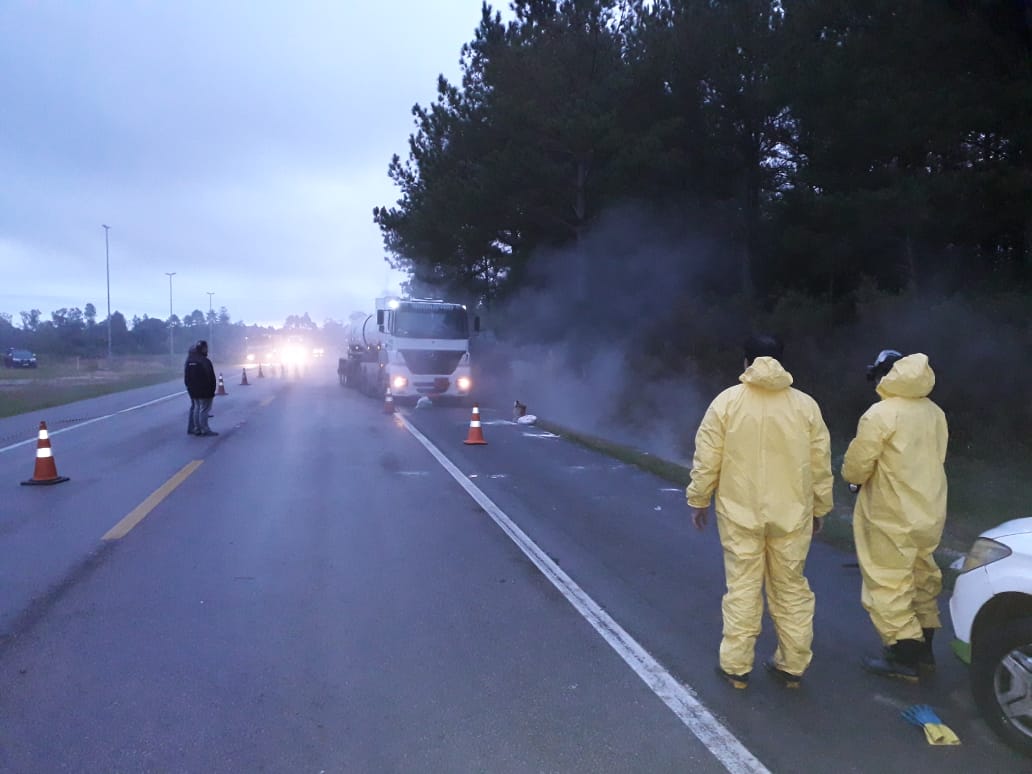 Trânsito continua intercalado na BR116 em Turuçu devido vazamento de carga tóxica na pista
