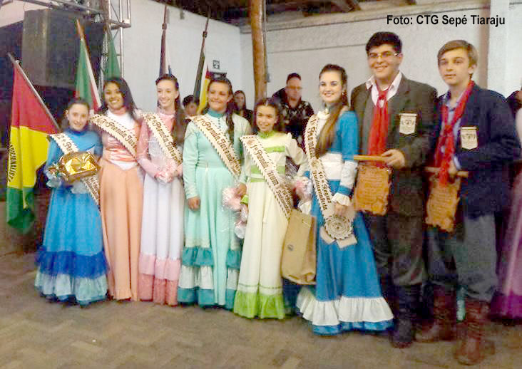 Amanda Brum -2ª Prenda Mirim 16ª RT, Riti Trindade- 3ª Prenda Juvenil 16ª RT, Rafaela Campello 2ª Prenda Juvenil 16ª RT, Amanda Ortiz Zietzke- 1ª Prenda Juvenil 16ª RT, Helena Duarte Schneid- 1ª Prenda Mirim 16ª RT, Andryelle Reis Osvald- 1ª Prenda 16ª RT, Ruggero Bubolz Valiati- 2º Guri Farroupilha 16ª RT e Raú Tarnowski 1º Guri Farroupilha 16ª RT.