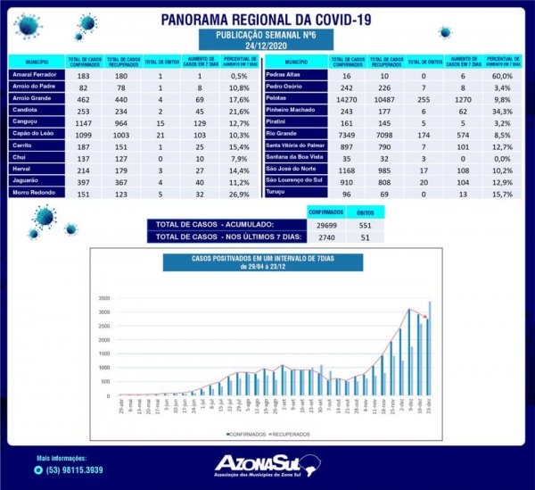 CONFIRA O ÚLTIMO PANORAMA DA AZONASUL COVID NA REGIÃO, DIVULGADO DIA 24 DE DEZEMBRO.