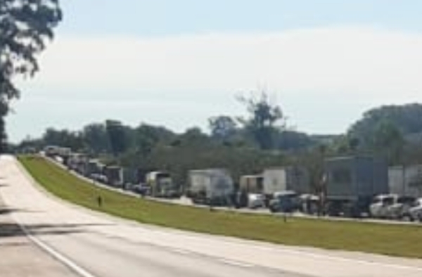 Atenção! Pista totalmente bloqueada no km 492 da BR-116, sentido Camaquã, próximo à Ponte sobre Arroio Corrientes, para retirada de caminhão tombado. Equipes sinalizam o local. Previsão de desbloqueio 1 hora. ECOSUL