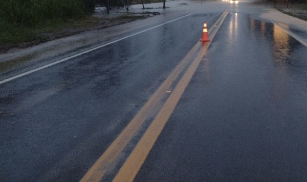 Atenção! Ecosul informa água sobre a pista na BR-116, próximo ao acesso à São Lourenço