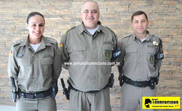 * Capitã PÂMELA SAUERESSIG, ex-Comandante da 2ª Cia BM e atualmente no CRPOSul, Coronel EDUARDO PERACHI, Comandante do CRPOSul e ex-Comandante da 2ª Cia BM e Capitão MENDONÇA atual Comandante em São Lourenço do Sul, três importantes presenças no evento do CRPOSul que reuniu em nossa cidade (na AABB) na última terça-feira 41 Oficiais de 27 municípios.